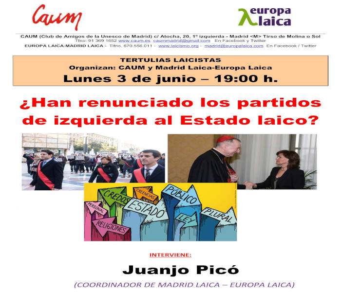 Organizan: CAUM y Madrid Laica-Europa Laica.